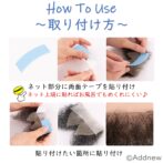 使い方:裏のネット部分にウィッグ用両面テープ又は接着剤を付け、好きな場所へ貼り付け♪